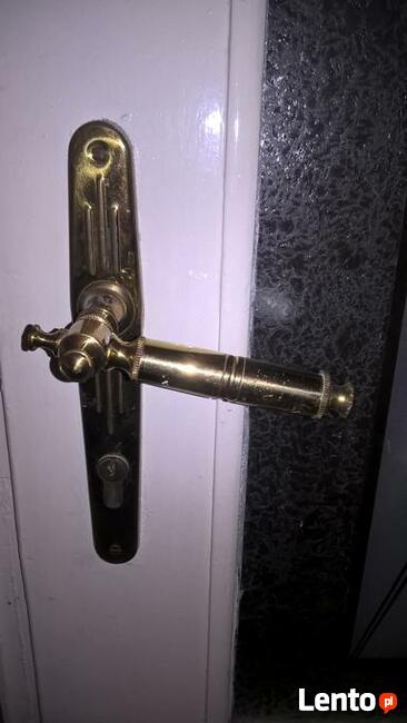 Sprzedam stare mosiężne klamki PRL z szyldem,zamkiem z wkładką i kluczem. Posiadam 3 sztuki, - wysokość szyldu 24 ...